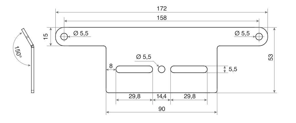 In alluminio anodizzato. Asole di fissaggio. Inclinazione 150°