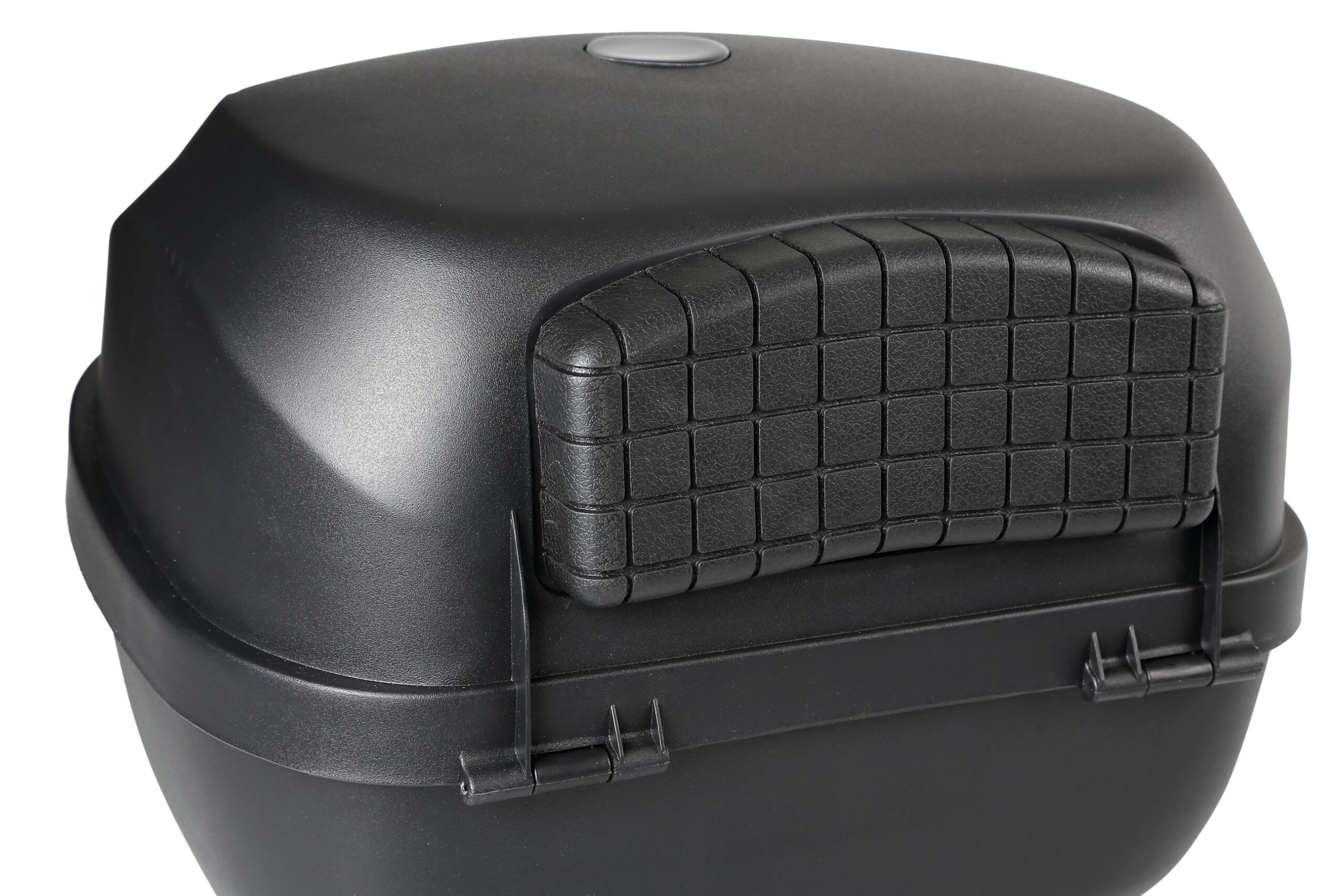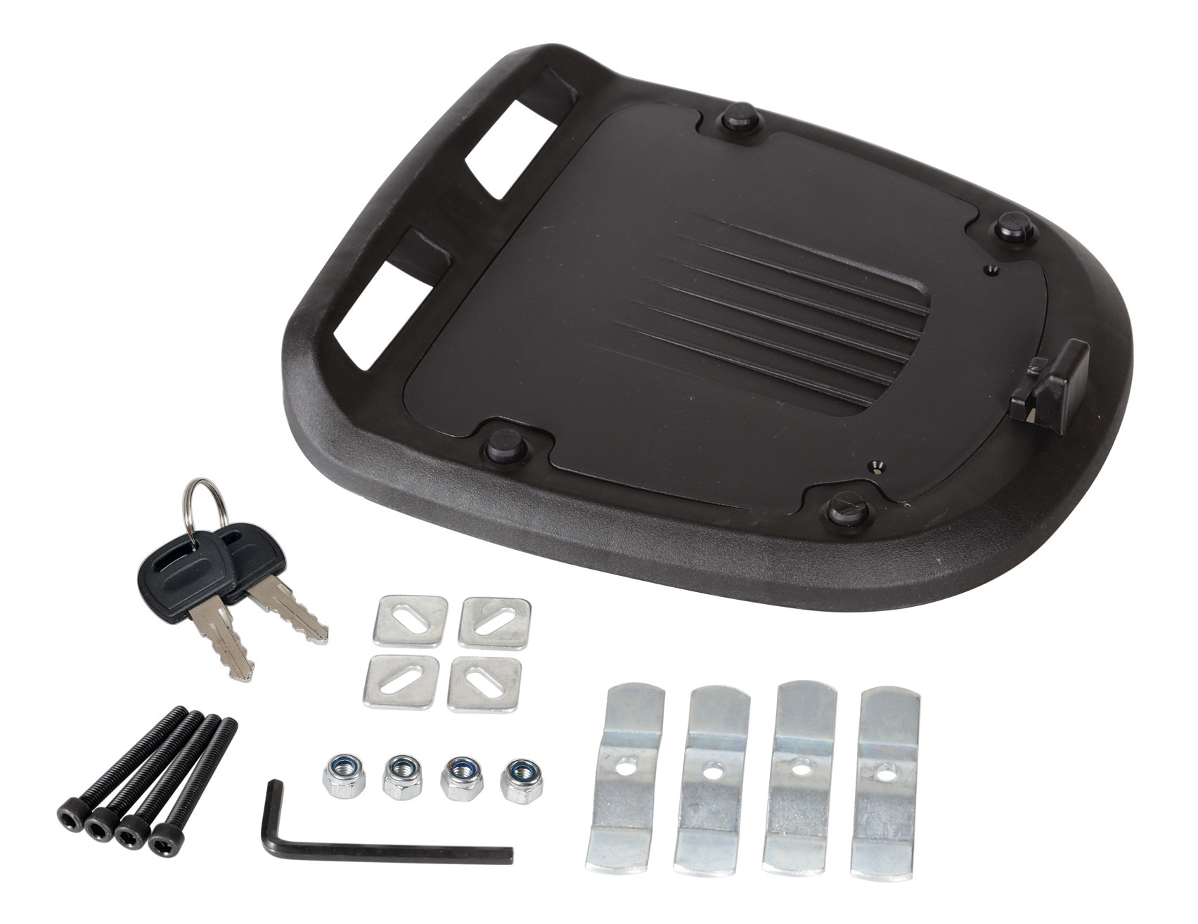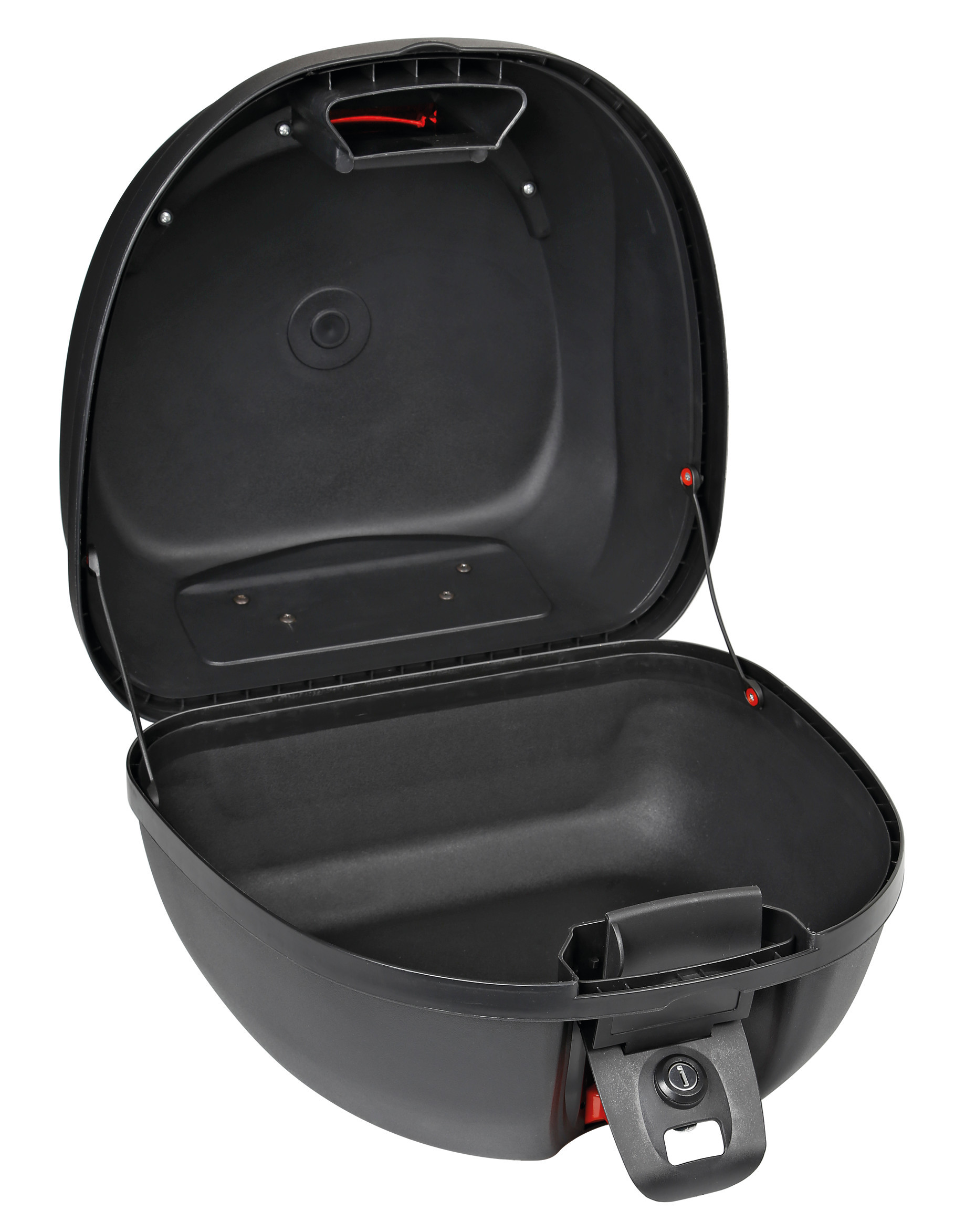 Colore nero goffrato. Completo di piastra e viti per il fissaggio. 2 chiavi in dotazione. Carico massimo 3 kg. Può contenere un casco integrale.