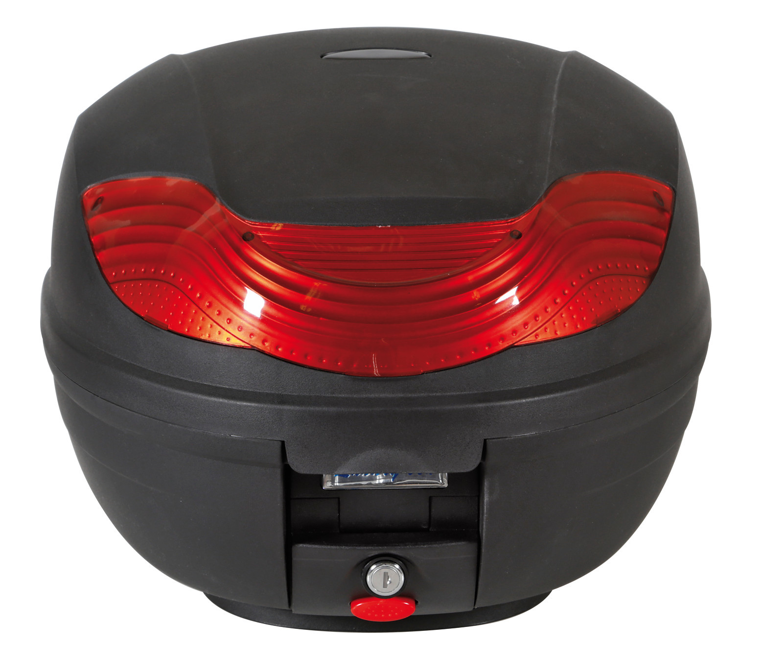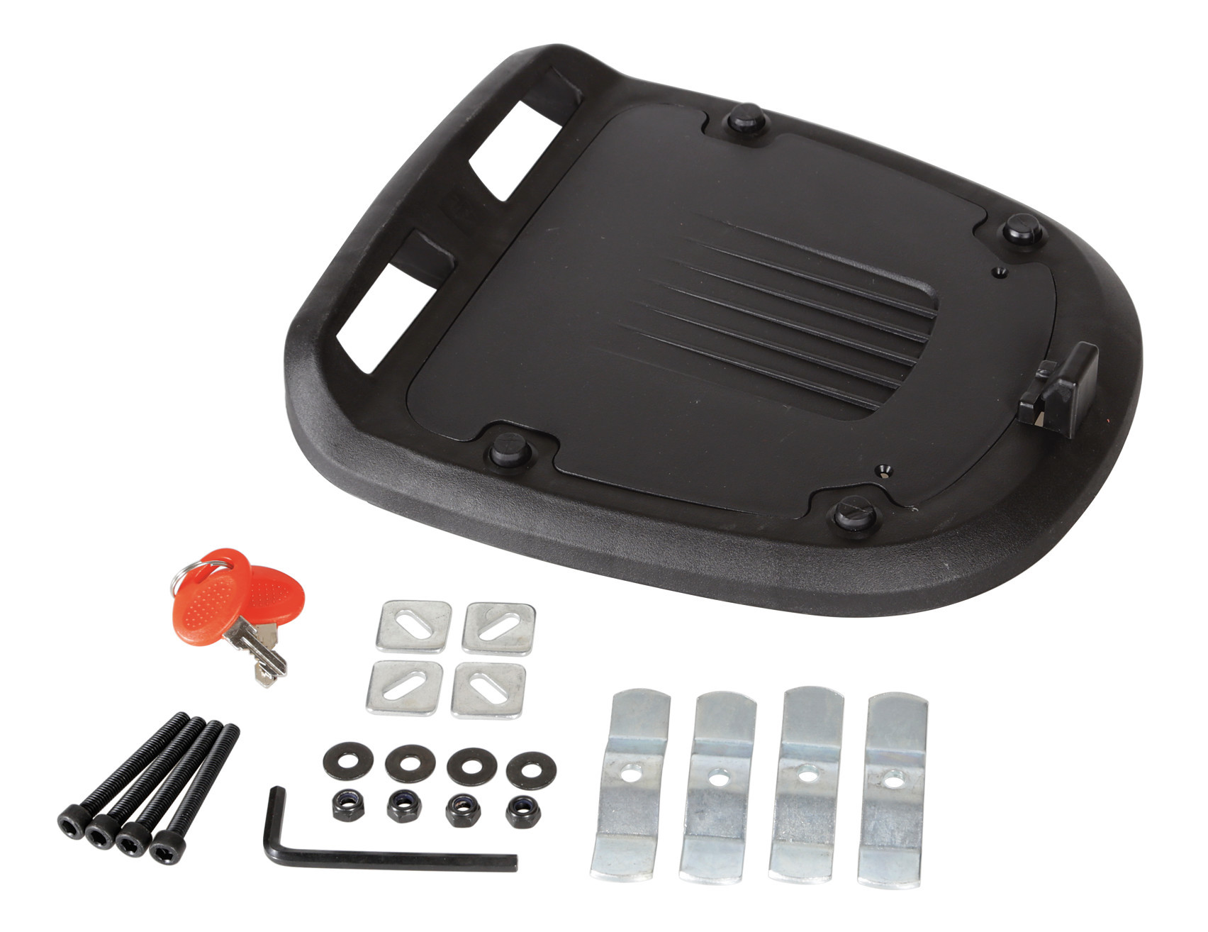 Colore nero goffrato. Completo di piastra e viti per il fissaggio. 2 chiavi in dotazione. Carico massimo 4,5 kg. Può contenere un casco integrale.