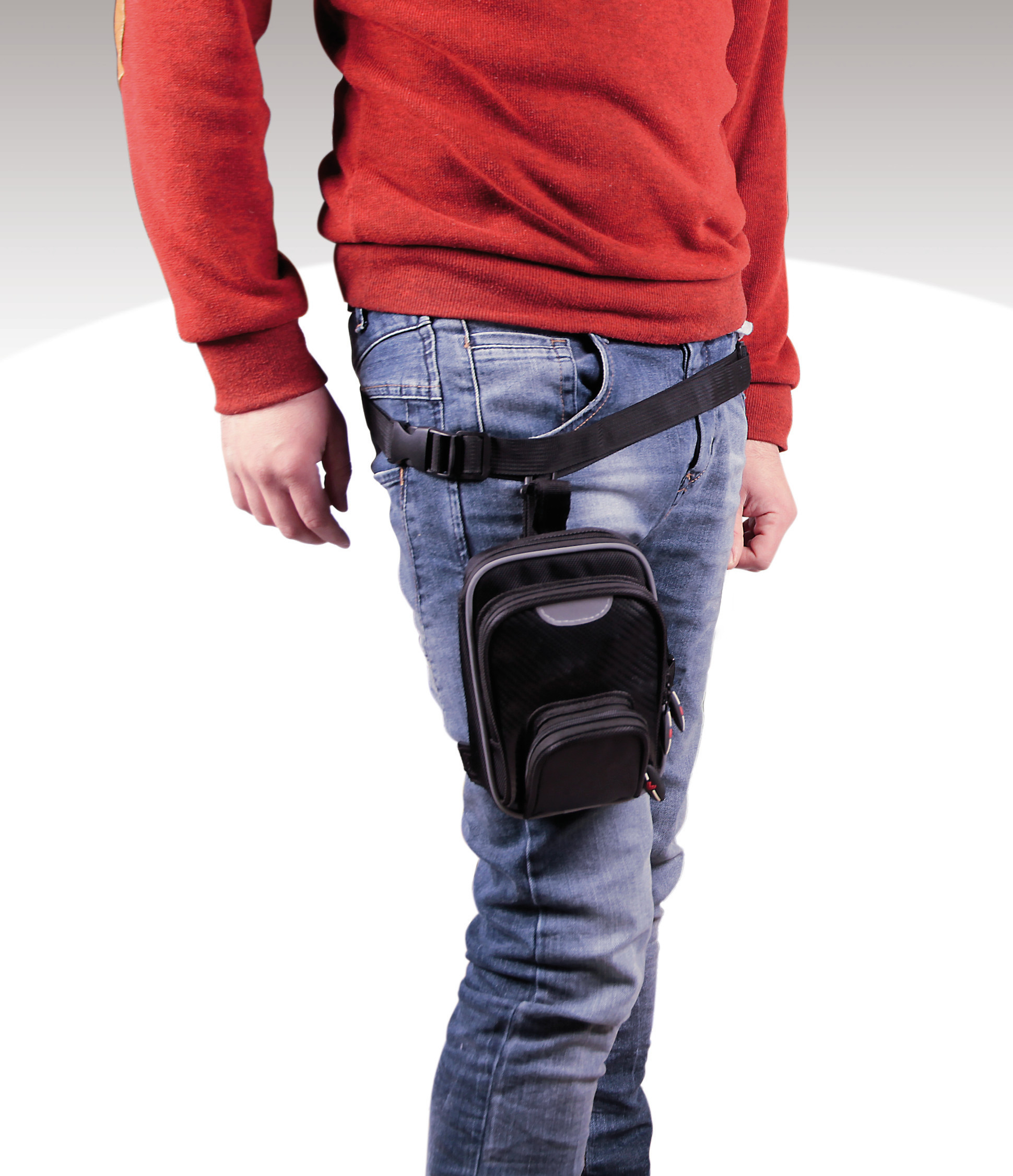 • Doppia regolazione tramite cinghie, in vita e alla coscia.