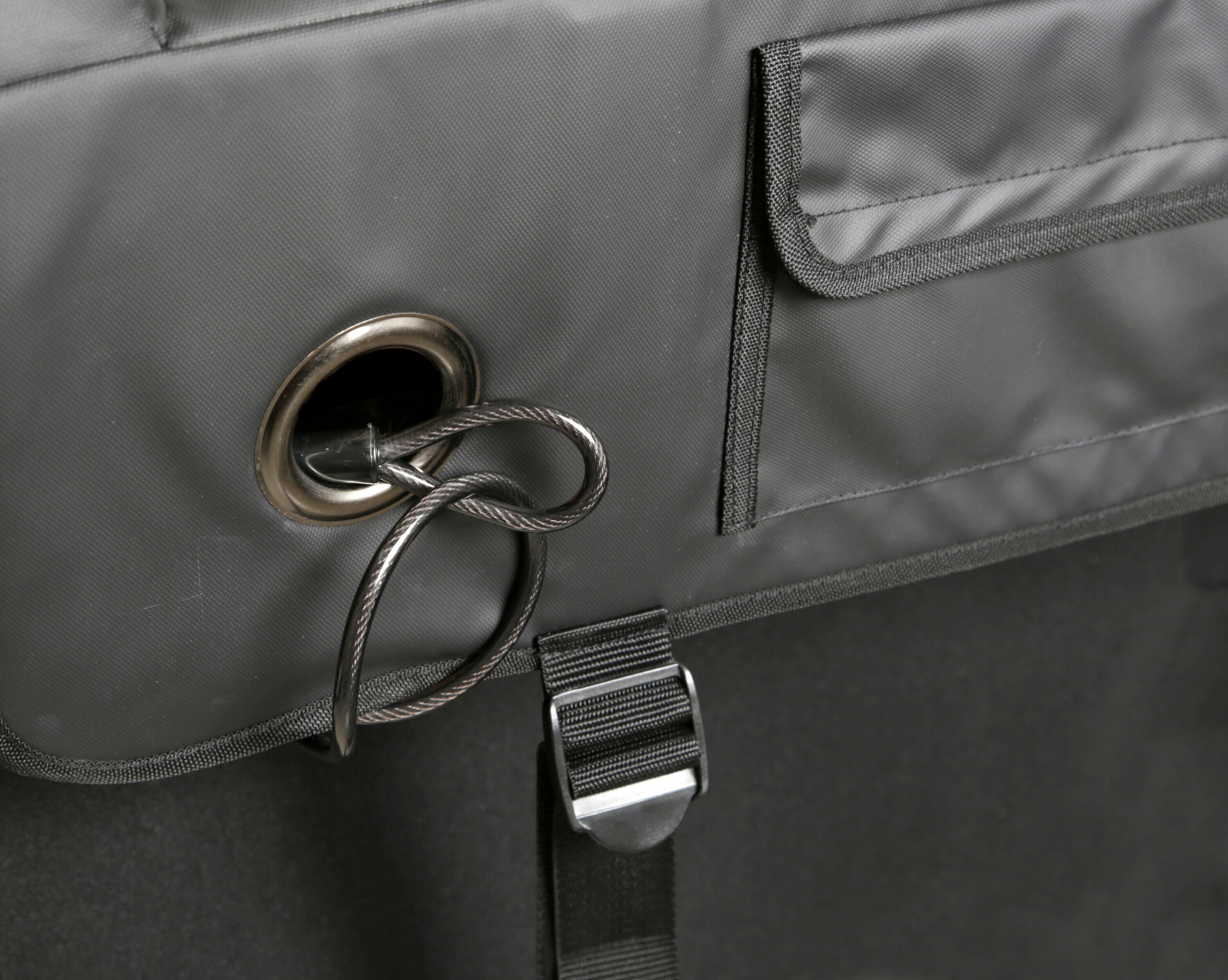 • Tasche portaoggetti a doppia chiusura con zip e nastri a strappo che permettono di avere comodi e al sicuro attrezzi, ricambi e utensili necessari.
