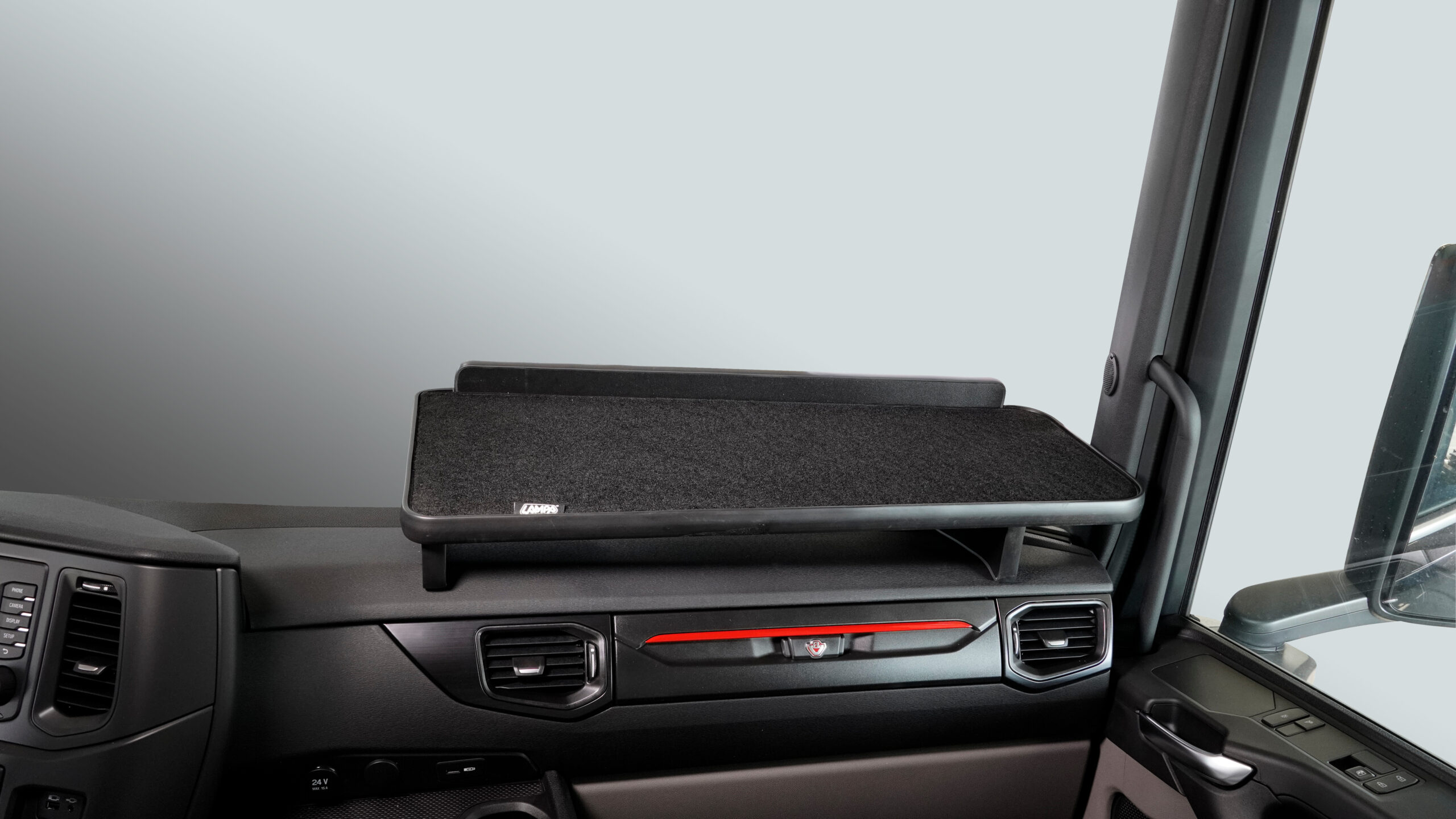 Tavolino per cruscotto – Centrale + Passeggero – compatibile per Mercedes Actros MP4 (09/11>09/19) cabina stretta, con o senza telecamera – Mercedes Actros MP5 (10/19>) cabina larga, con o senza telecamera – Mercedes Actros MP5 L (11/21>) cabina larga, con o senza telecamera – Mercedes Actros MP5 F (11/21>)