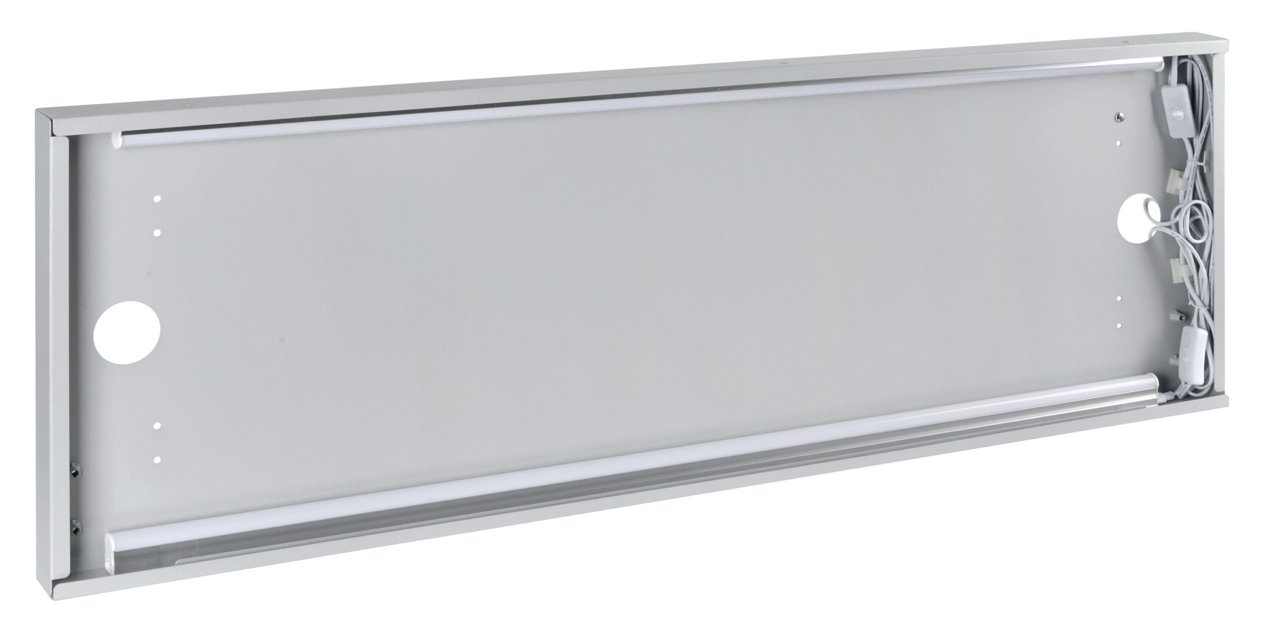 Pannello opalino con grafica e staffe di montaggio da ordinare separatamente.