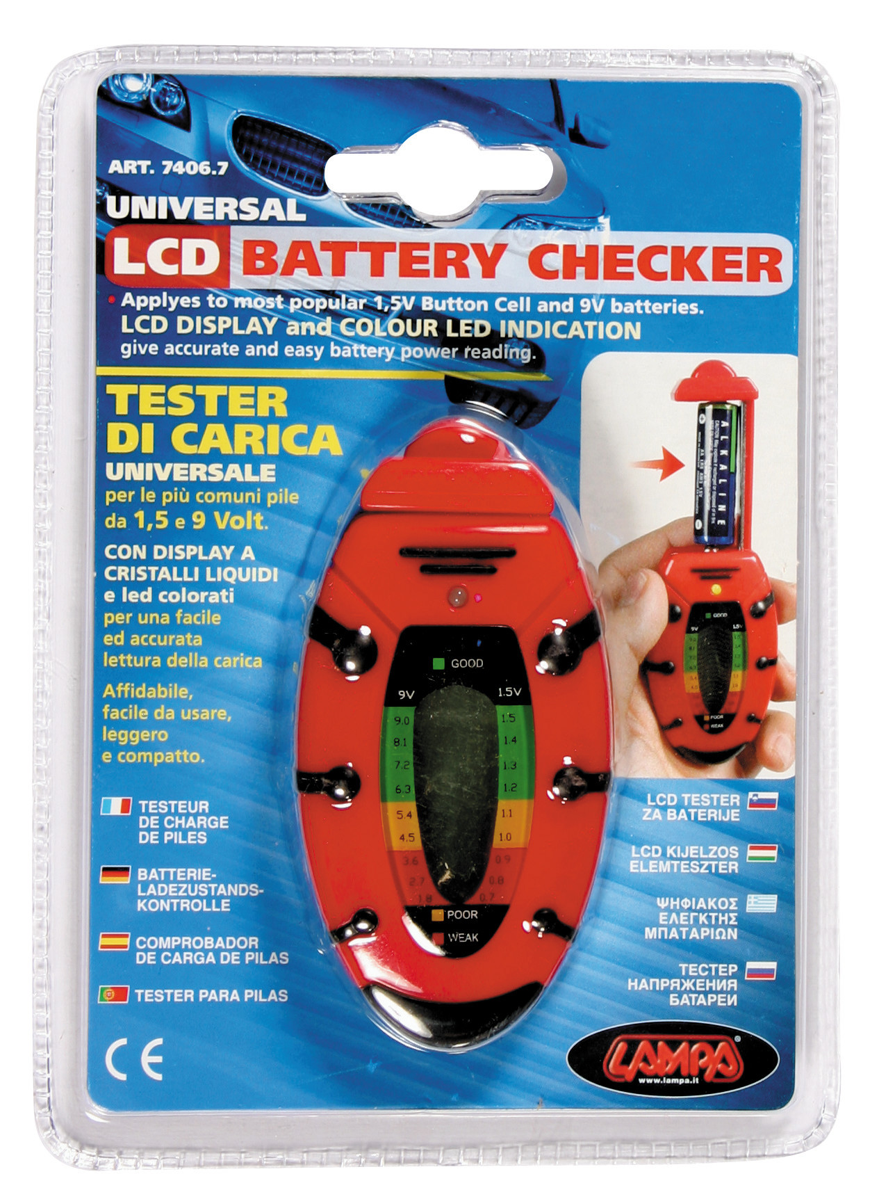 Universale per pile da 1,5 a 9 V. Con display a cristalli liquidi. Affidabile, facile da usare.