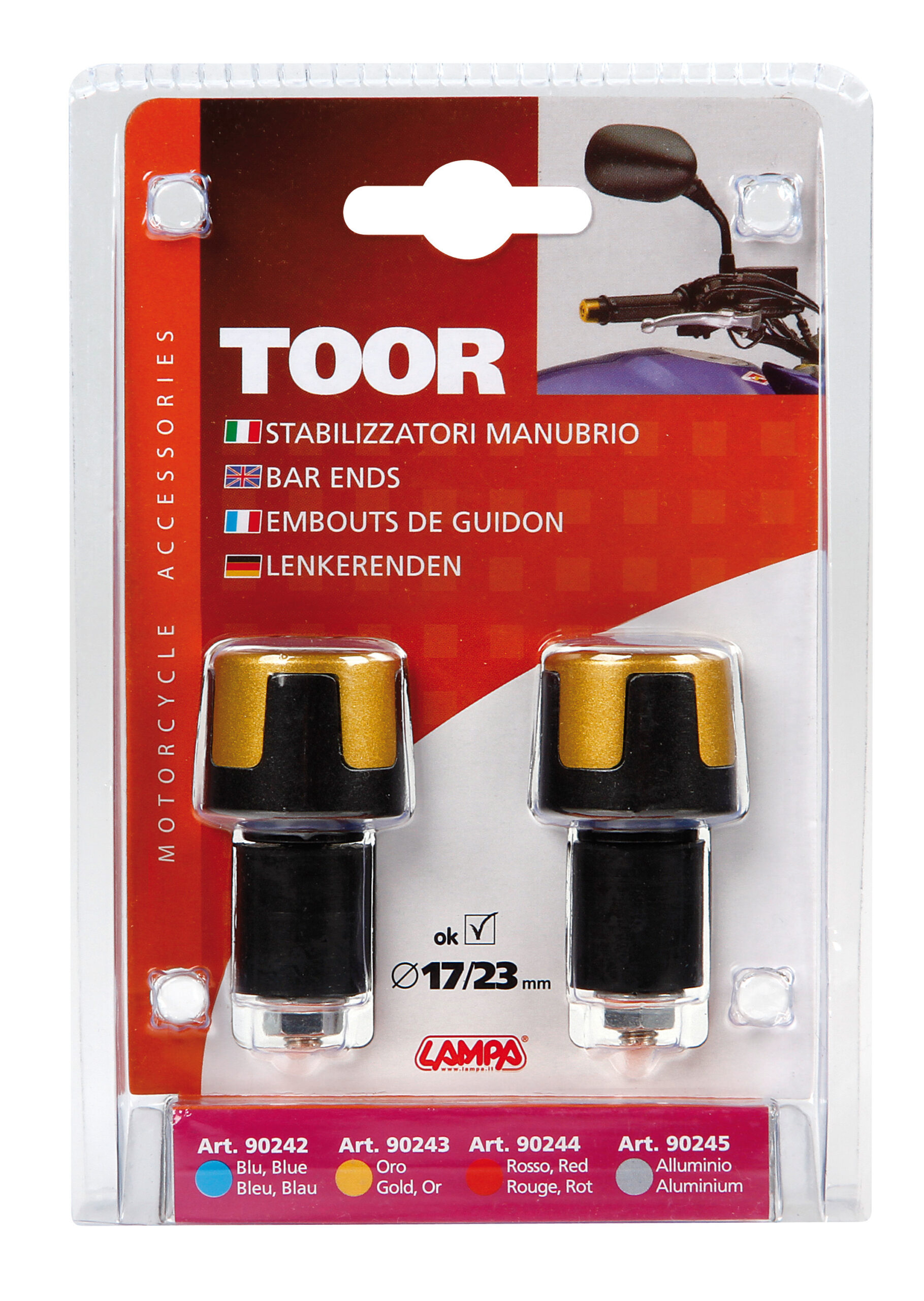 Per manubri con foro da Ø 17 a 23 mm. Migliorano la stabilità della moto e riducono le vibrazioni sul manubrio. Peso 100 g cadauno