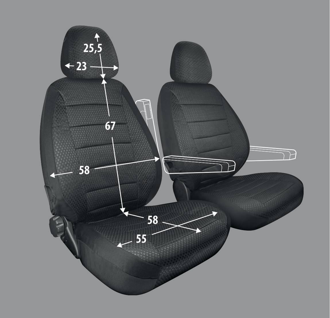 • Forma speciale per braccioli: il design del coprisedile è pensato per adattarsi alla presenza di braccioli, garantendo una vestibilità perfetta.