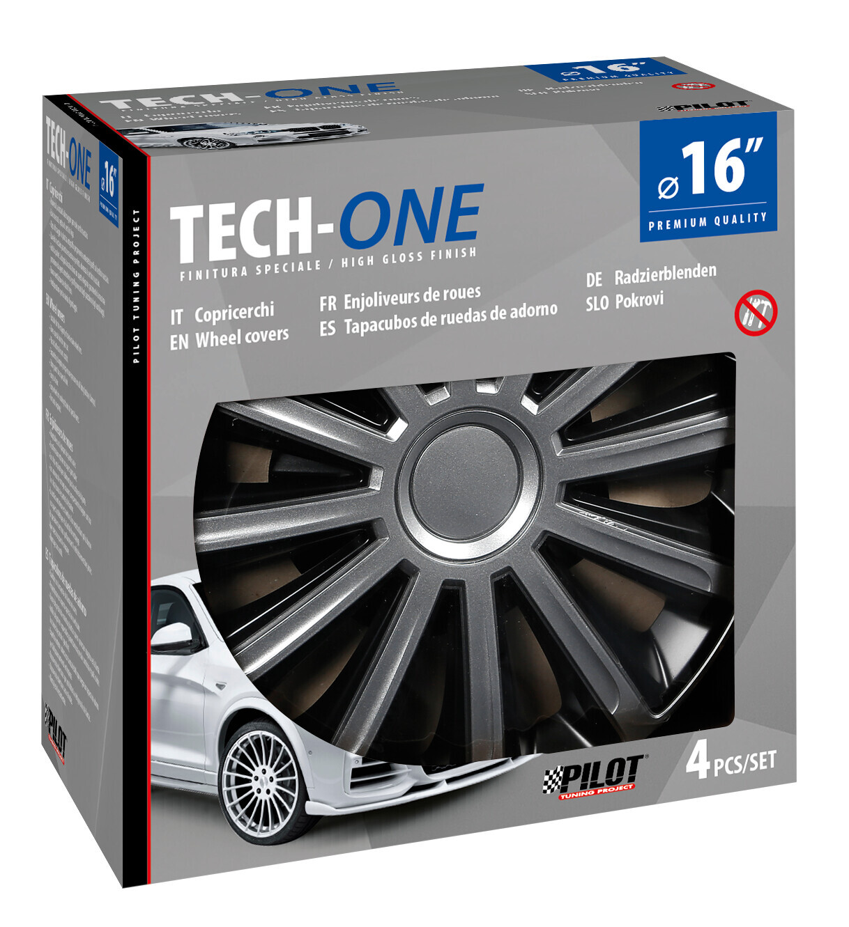 Kojin Carbon Silver-Black – Set 4 copricerchi – Ø 16″