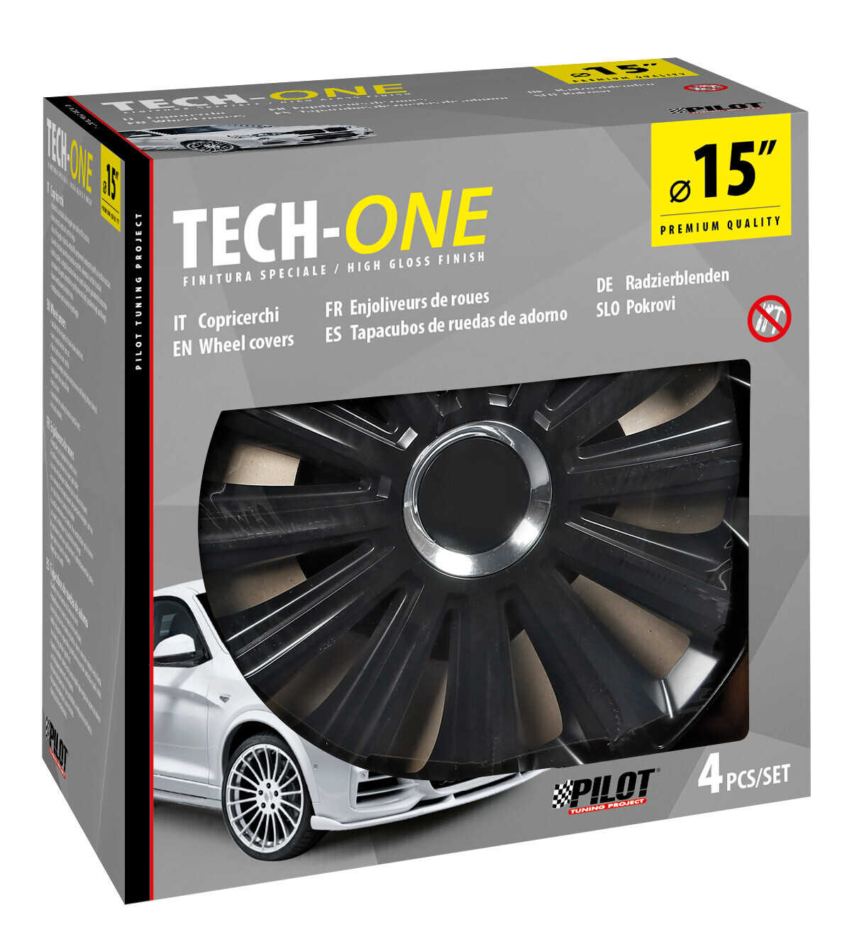 Kojin Carbon Silver-Black – Set 4 copricerchi – Ø 15″