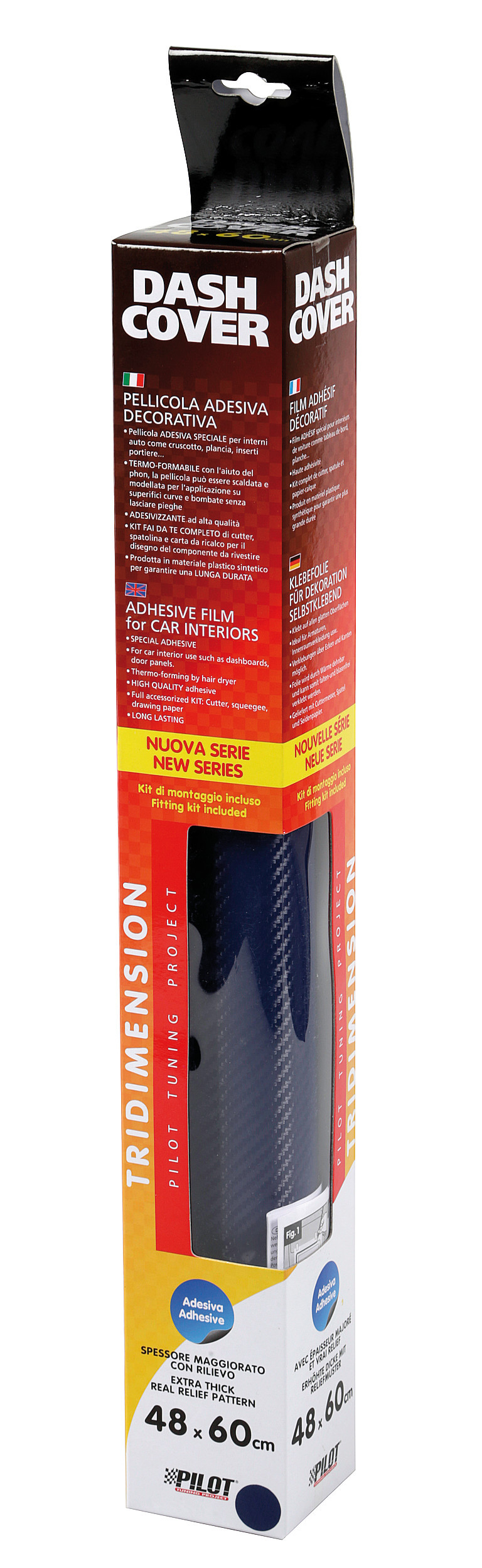 Rivestimento adesivo decorativo. Nuova serie, spessore maggiorato con rilievo. Speciale per interni come cruscotto, plancia, inserti portiere…