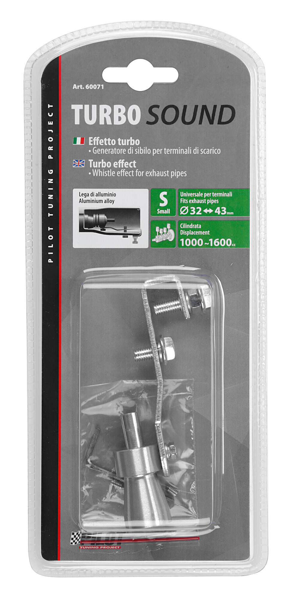 Si applica all’interno del terminale di scarico ed emette un sibilo tipico delle vetture turbo. Di facile installazione.