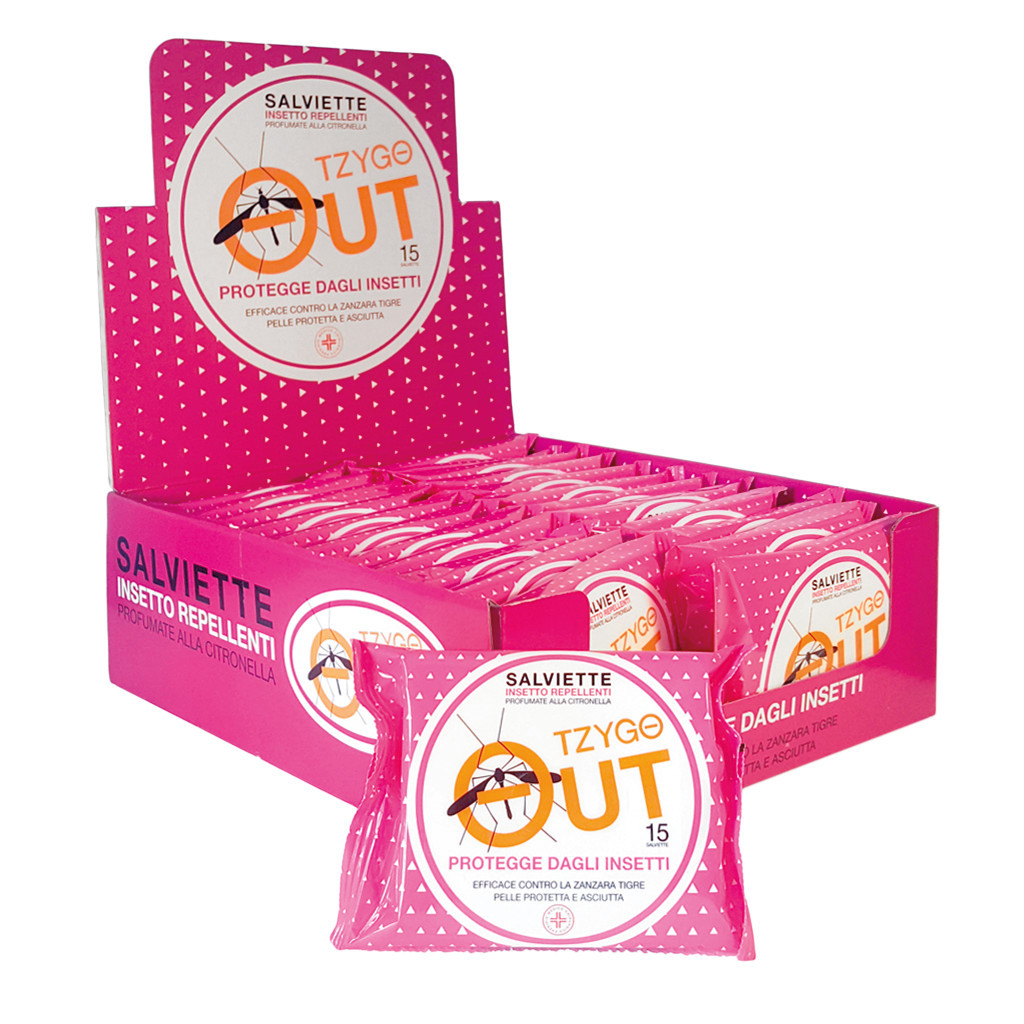 Tzygo Out, salviette monouso insetto repellenti – Display 24 pz