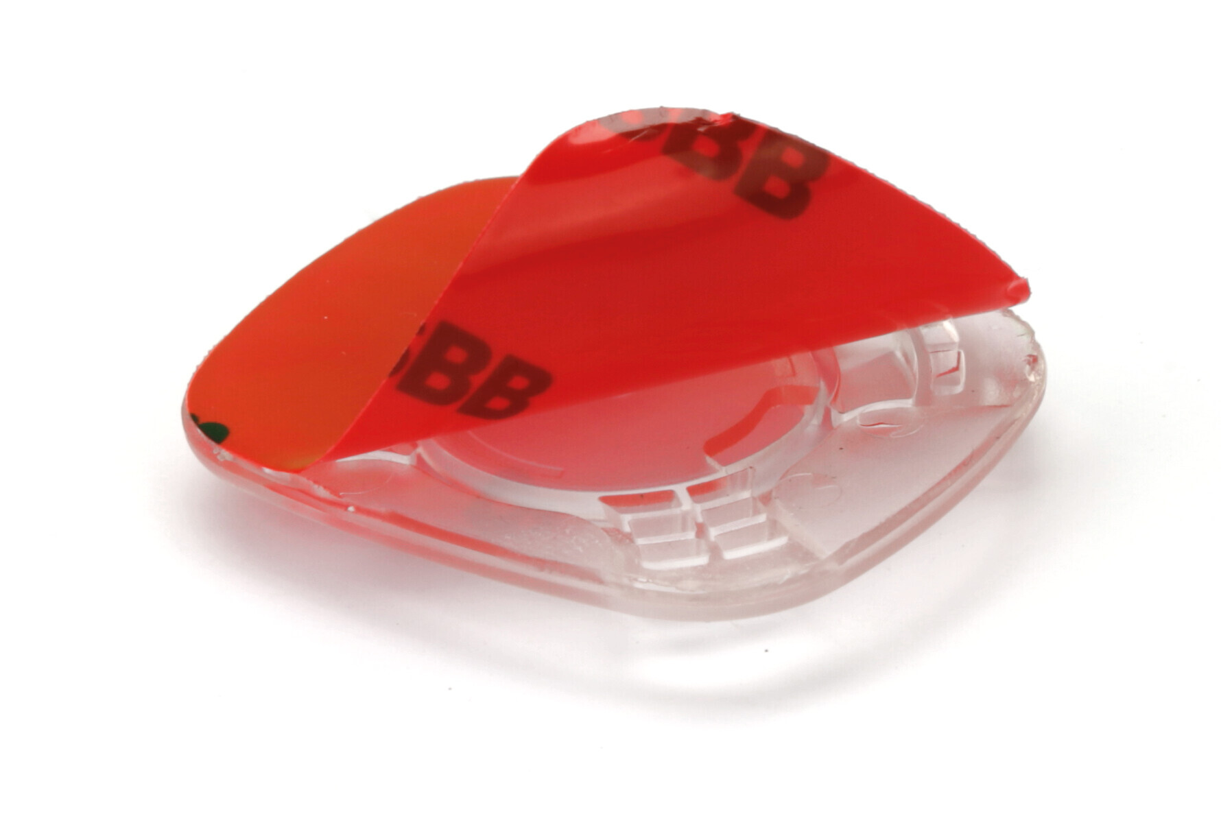 Base adesiva che aderisce a superfici lisce e leggermente curve (senza porosità o finiture particolari) come plastica e metallo.