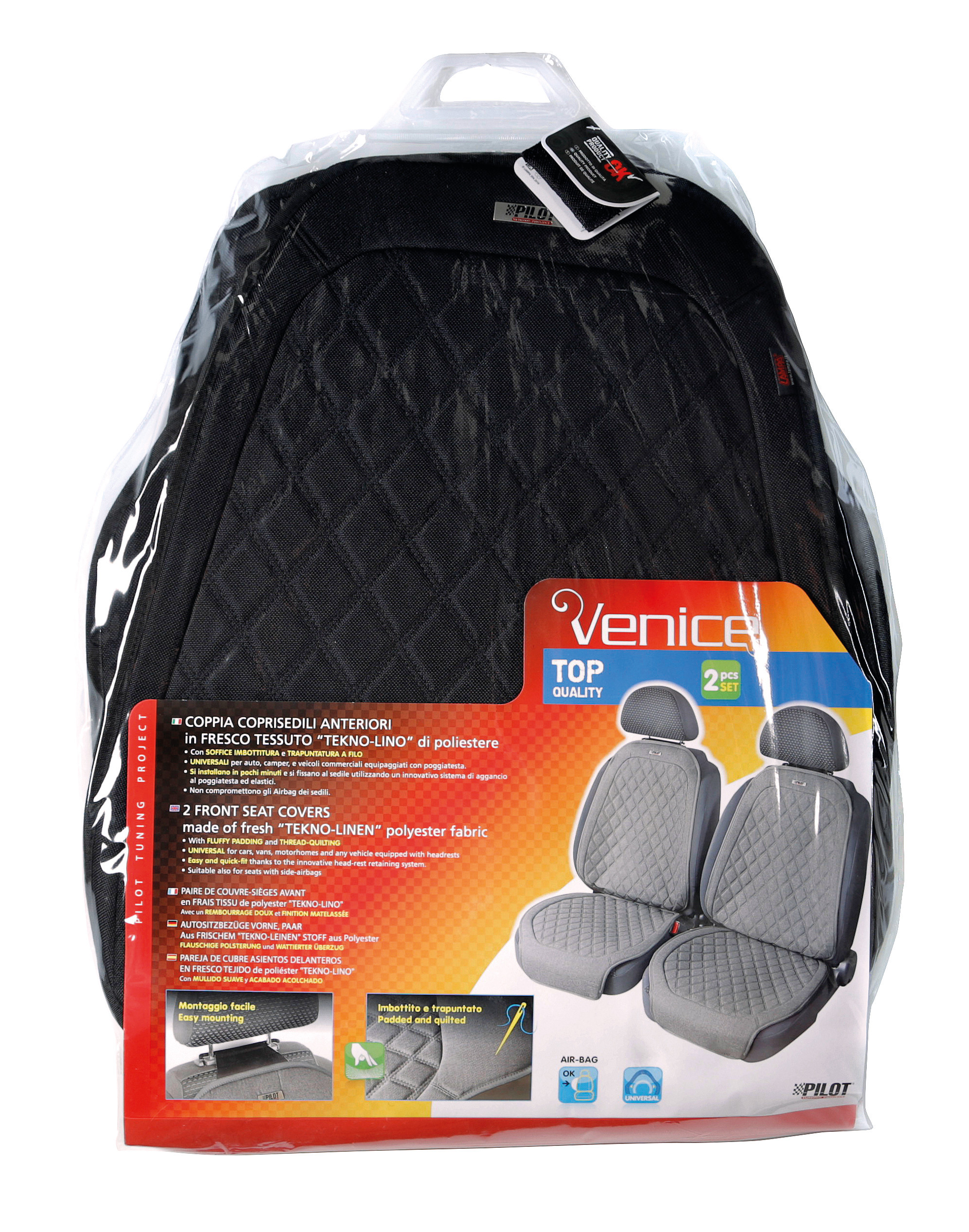 Venice, coppia coprisedili anteriori in fresco tessuto tekno-lino di poliestere – Nero
