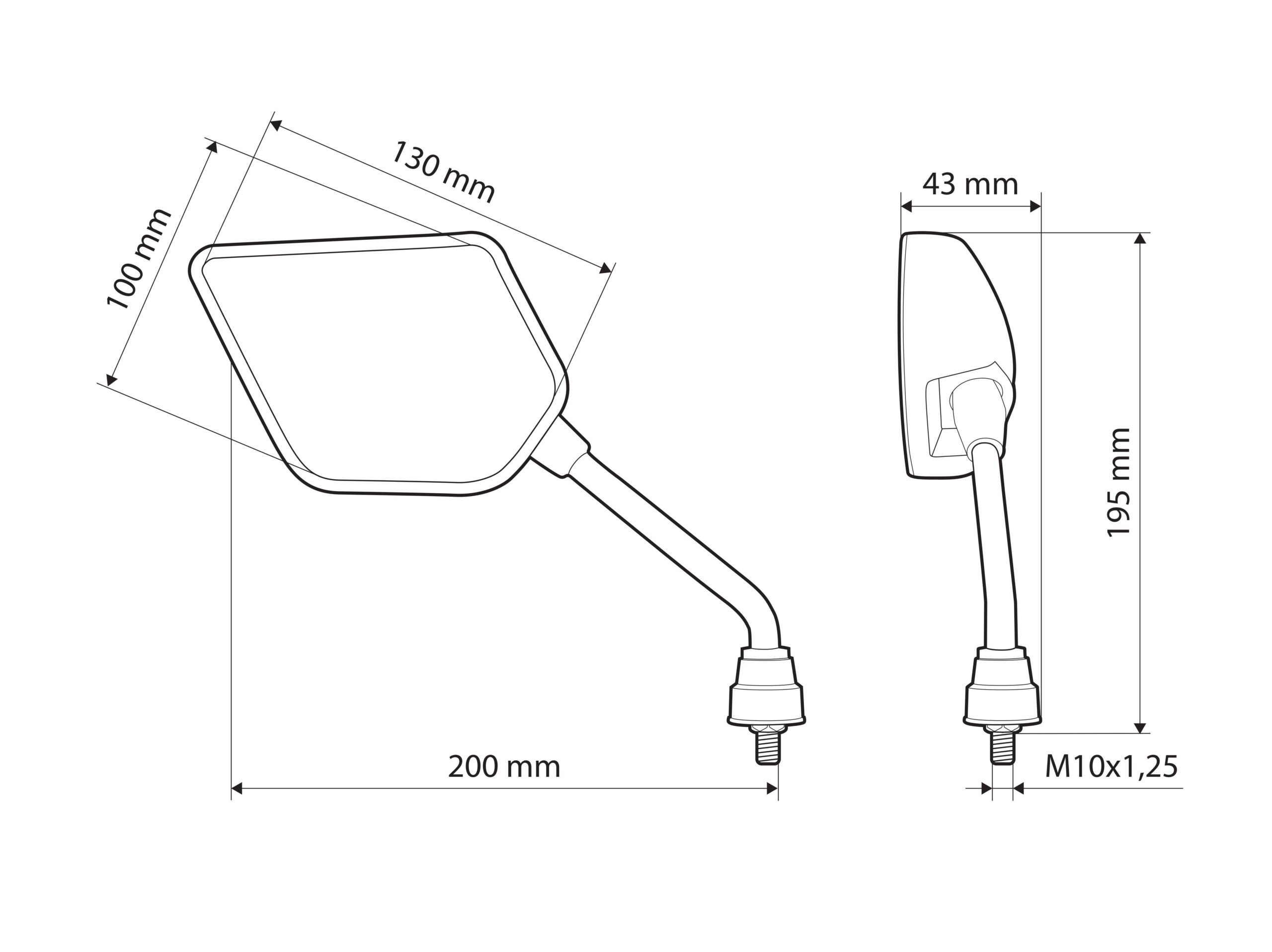 Estensore e sollevatore specchi moto – Filetto M10 destro