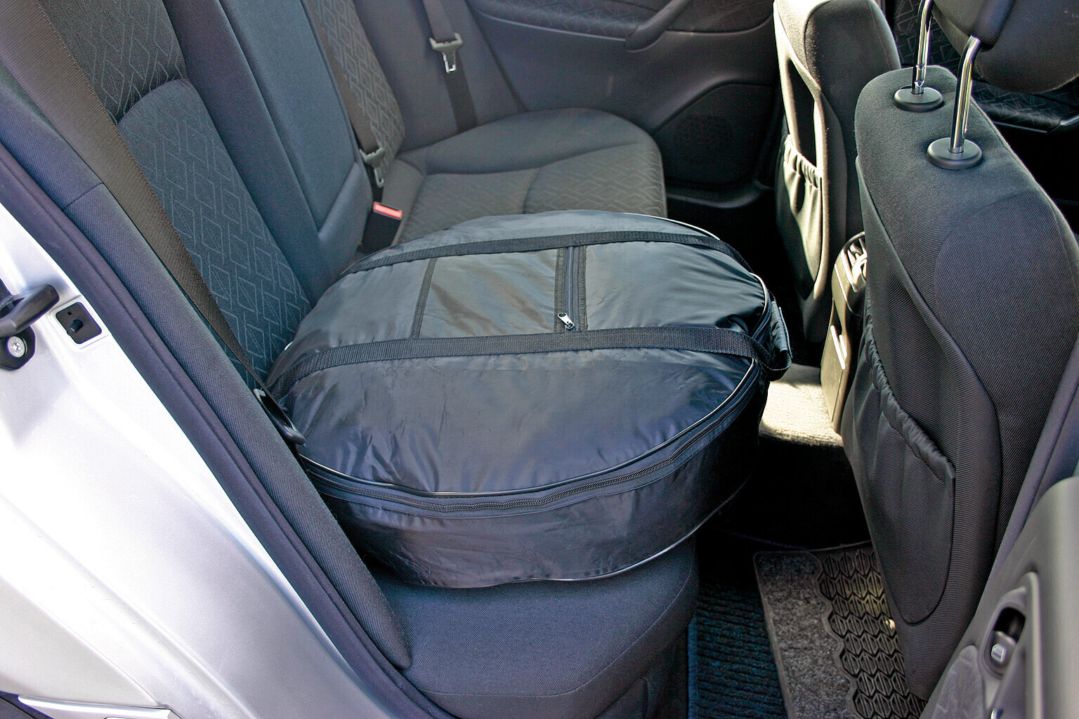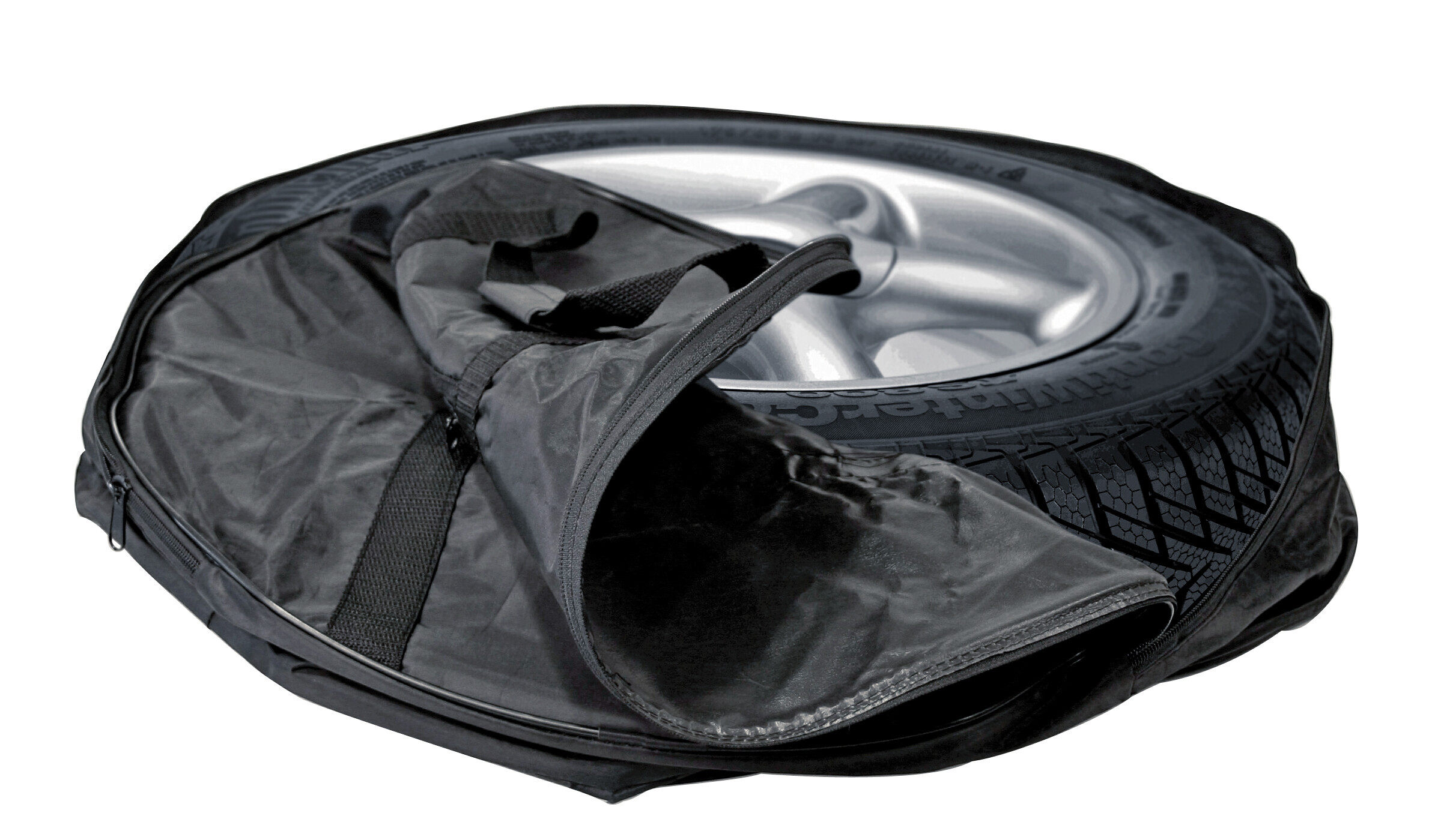 Borsa copriruota di scorta con chiusura a zip e maniglie trasporto. Ideale per le vetture con serbatoi GPL nel vano portaruota.