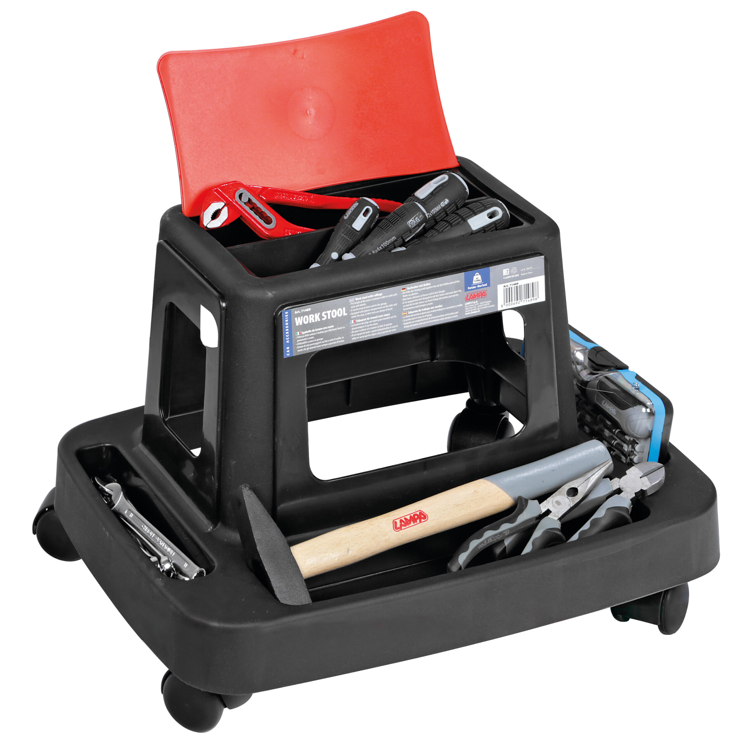 • L’altezza della seduta è studiata per effettuare lavori su pneumatici, ruote, fanali….
