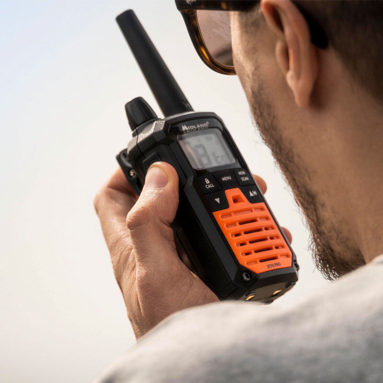 Midland XT70 PRO Hobby & Work offre comunicazioni affidabili su una banda di frequenza estesa con 101 canali totali e 142 subtoni CTCSS/DCS. Ideale per ambienti lavorativi e outdoor, garantisce una copertura fino a 12 km e una autonomia di ben 12h. La funzione VOX con 9 livelli di sensibilità attiva automaticamente la trasmissione rilevando la voce, consentendo un utilizzo a mani libere. La modalità SCAN esegue una ricerca automatica delle frequenze disponibili, facilitando il contatto rapido con altri dispositivi. Progettato per resistere a condizioni difficili, dispone di certificazione IPX4 che lo protegge da spruzzi d’acqua. Il canale RRM (Rete Radio Montana) permette di segnalare emergenze e ricevere aggiornamenti di sicurezza, rendendolo perfetto per escursionisti e lavoratori sul campo. Utilizzo senza licenza.