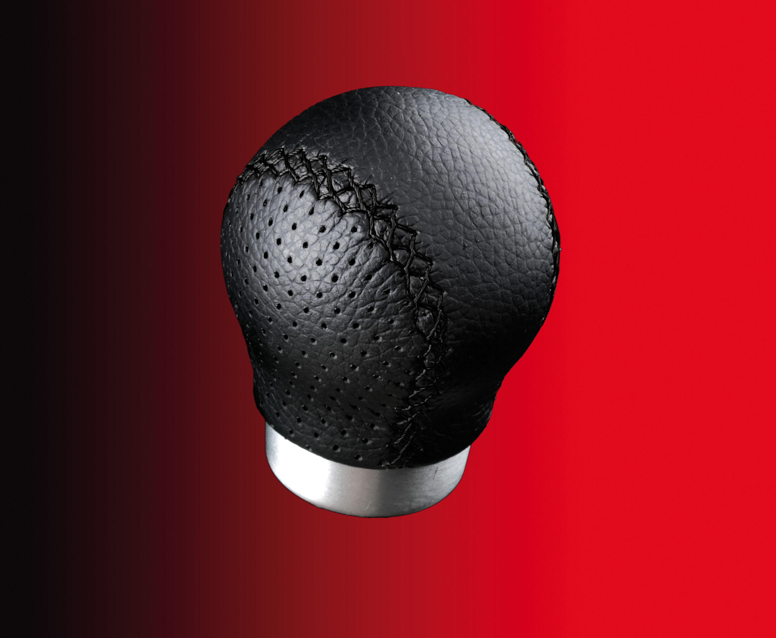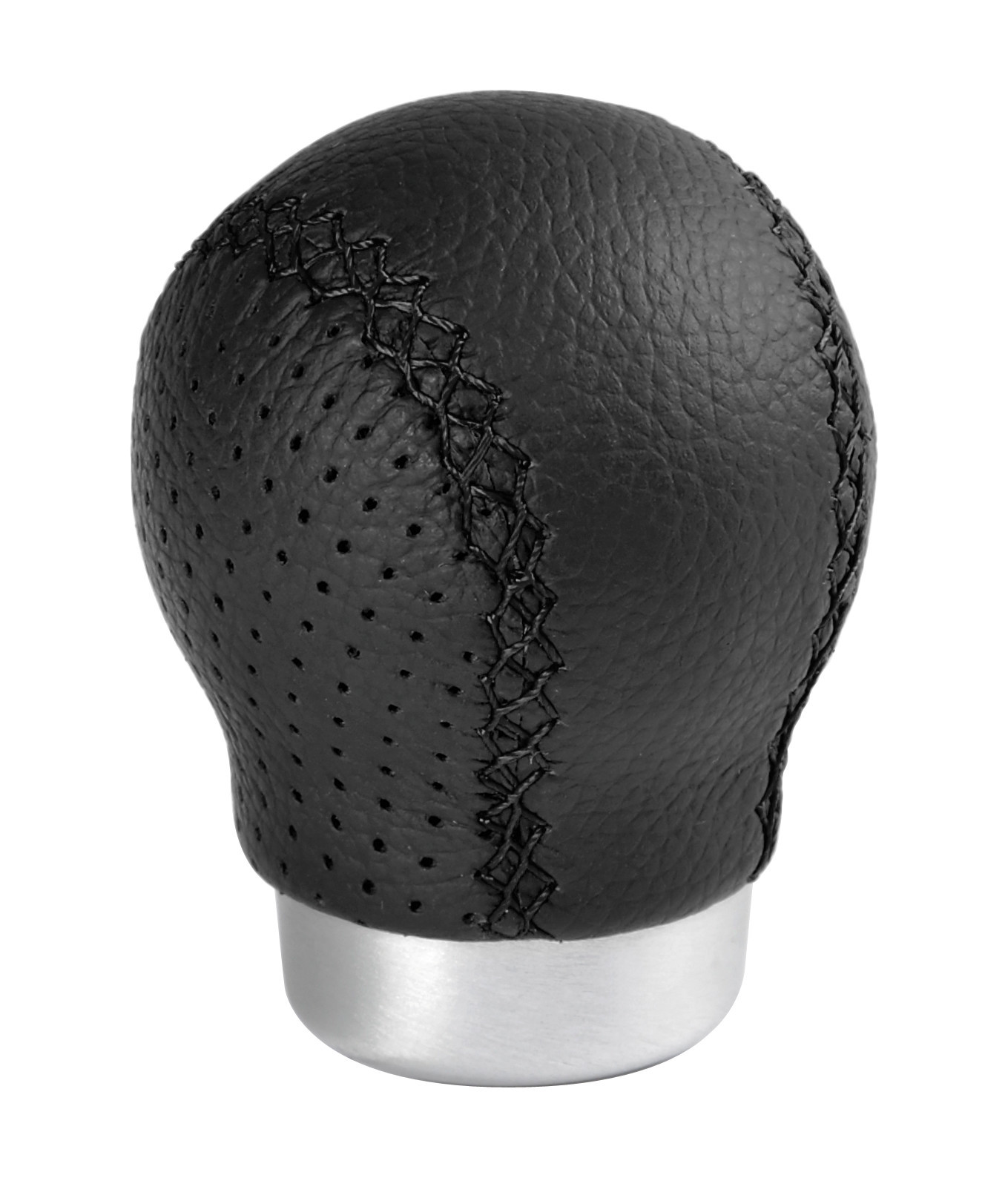 Pomello leva cambio alluminio e pelle. Montaggio fai da te tramite kit con adattatori e chiave esagonale in dotazione. Attacco brevettato universale idoneo per leve cambio standard (Ø 15 mm max) e leve cambio speciali con ghiera di innesto retromarcia (Ø 30 mm max)