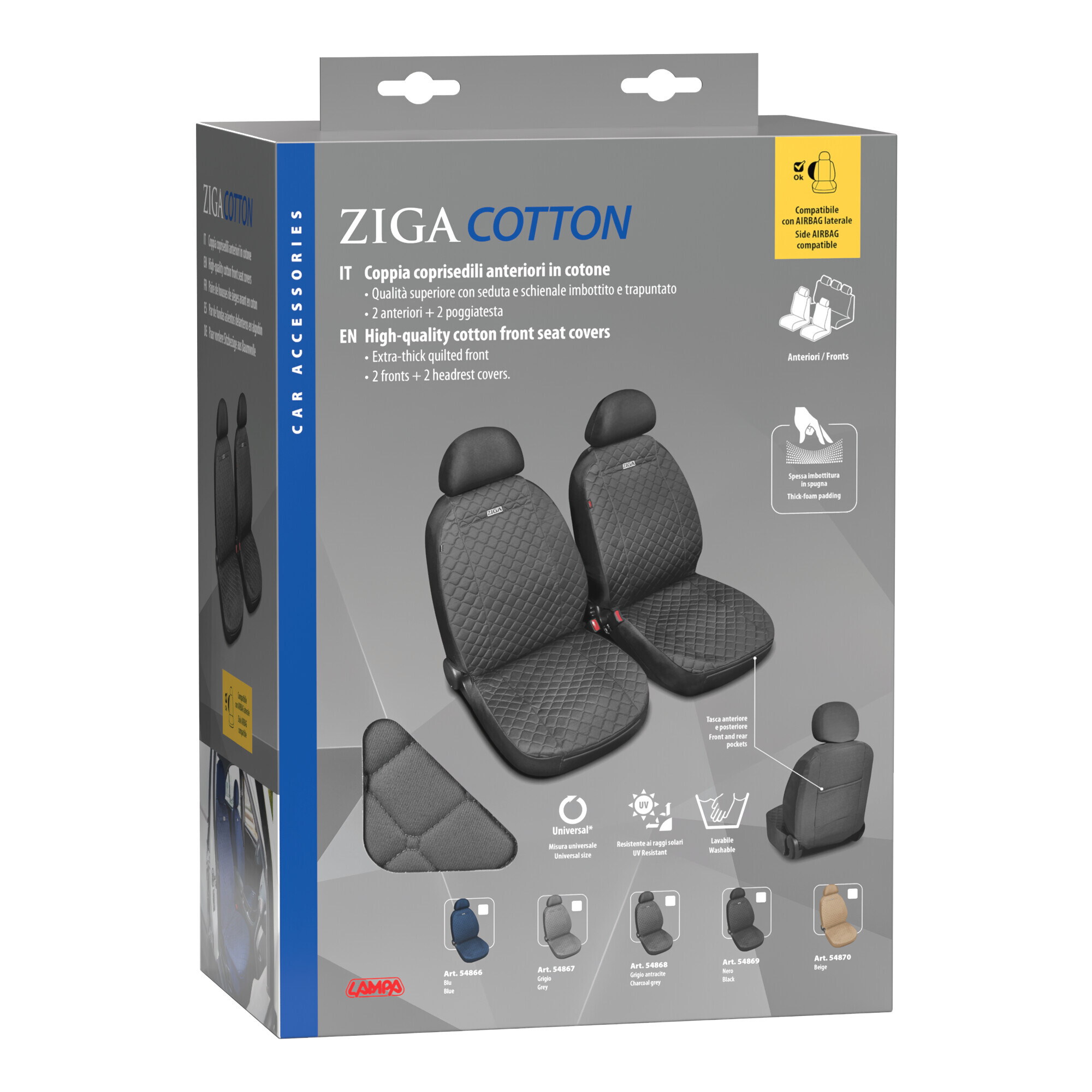 Ziga, coppia coprisedili anteriori in cotone, universali – Blu
